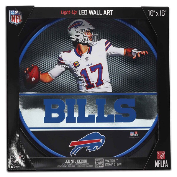 Buffalo Bills Josh Allen LED Round Wall Decor SKU: 90235194 Please log in to see price or purchase this item (0)No Reviews yet Availability: In Stock Details Buffalo Bills officially licensed product Fast Shipping and Easy Returns Product Category: Signs & Wall Art Material Description: Plastic Size: 16" W ... Details Back DetailsBuffalo Bills officially licensed productFast Shipping and Easy ReturnsProduct Category: Signs & Wall ArtMaterial Description: PlasticSize: 16" W X 16" H X 1.25" DWeight: LBSItem is purchased in intervals of 4 Reviews 0 Back Ratings & ReviewsNo reviews availableBe the first to Write a Review