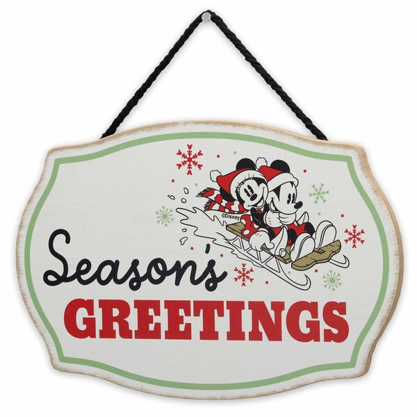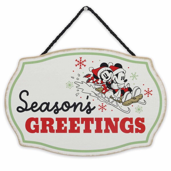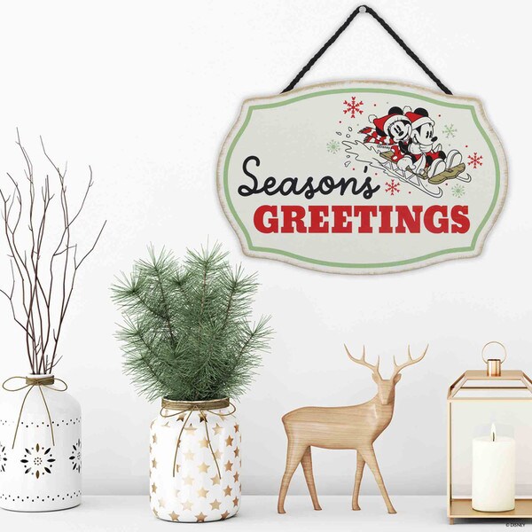 Disney Mickey & Minnie Mouse Season's Greetings Christmas Hanging Wood Decor