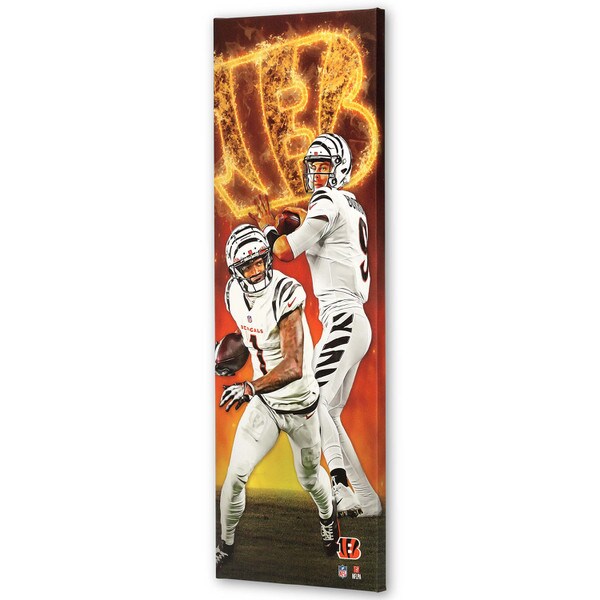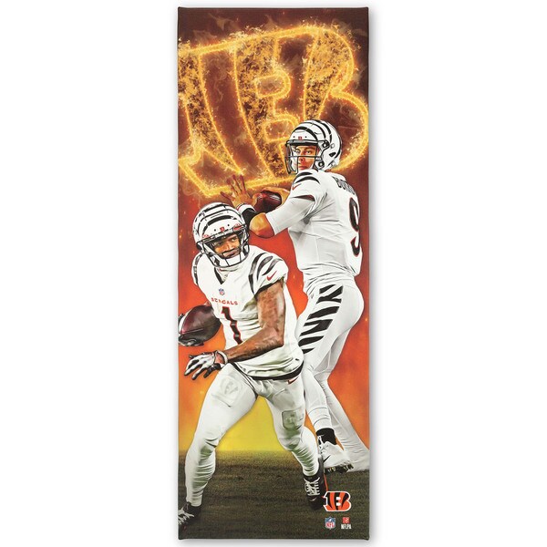 NFL Cincinnati Bengals Joe Burrow & Ja'Marr Chase Flaming Logo Canvas Wall Decor