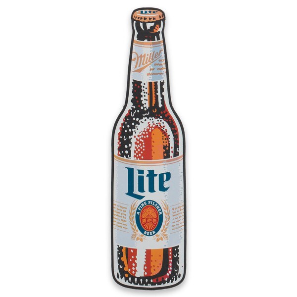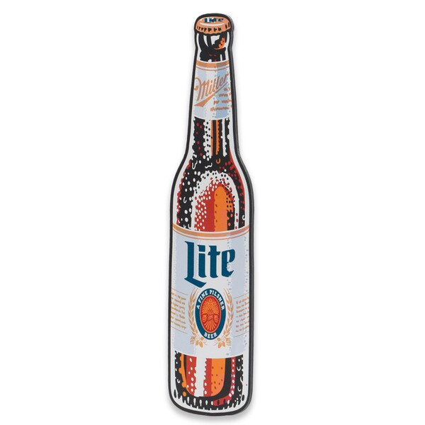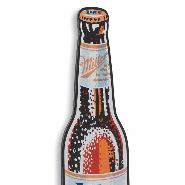 Step into the refreshing world of Miller Lite with this eye-catching wall decor! Crafted in the shape of a die-cut glass beer bottle, this sign is a tribute to the crisp and satisfying taste of Miller Lite.