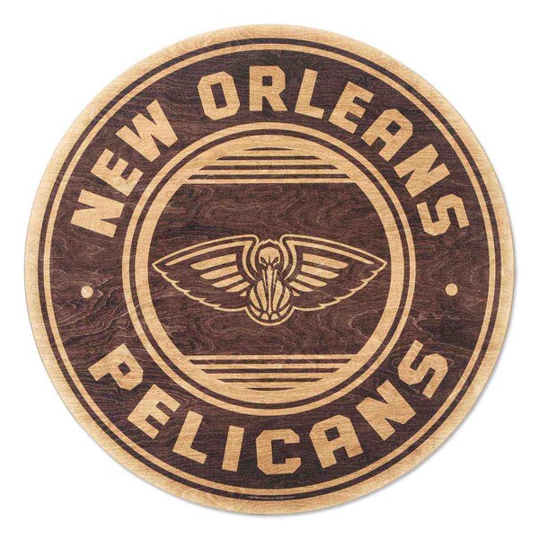 New Orleans Pelicans Logo Round Natural Wood Wall Decor
