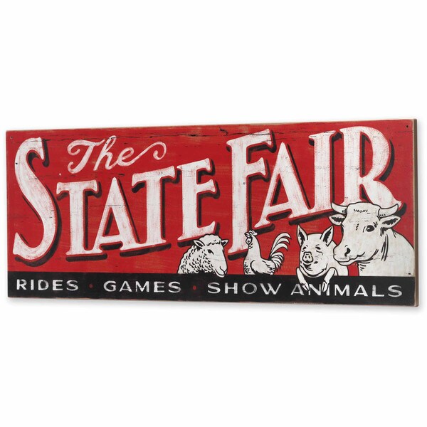 There's just something about the sights and smells of the State Fair that keeps you coming back year after year! This classic wall art captures a bit of that nostalgia and charm with its distressed finish and red, black, and white color scheme.
