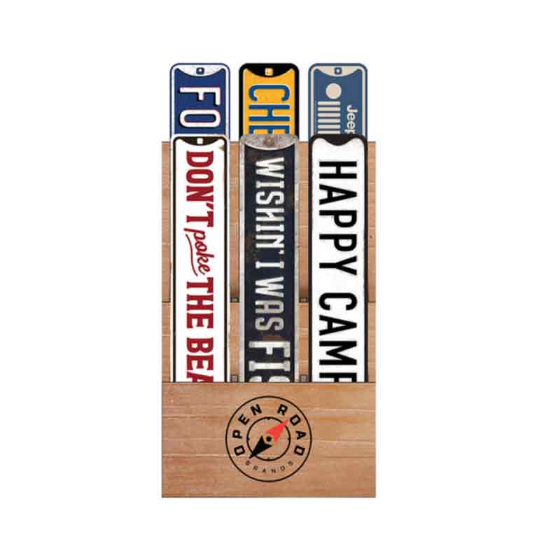 This kit has a selection of street signs with a nice mix of interests and brands to appeal to a wide range of your customers. There are 6 total designs, and the kit includes 4 of each design. These metal signs are 12” wide, 20” high, and come with a free PDQ for quick and easy display.