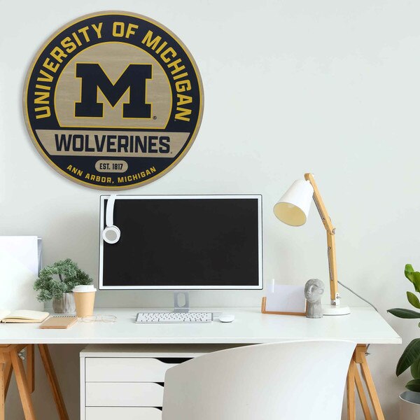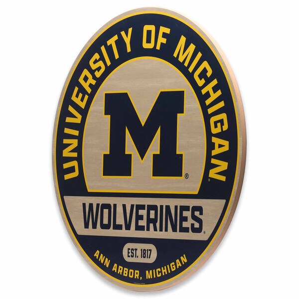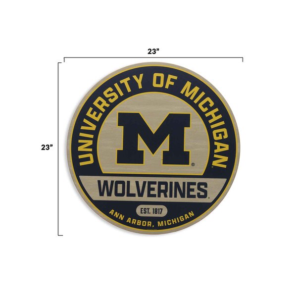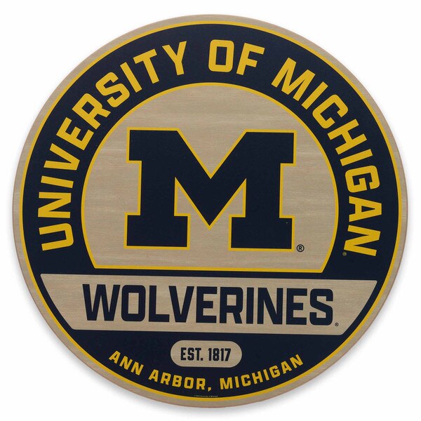 Transform your wall decor with this vibrant, stylish round sign - an essential for any dedicated Wolverines fan! Featuring a rich wood grain background, this piece brings rustic charm to your space while proudly showcasing the University of Michigan's iconic color scheme of maize and blue.