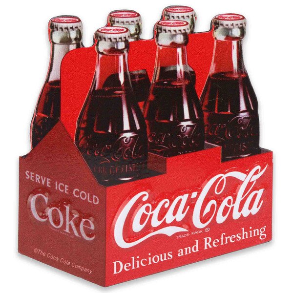 Nothing is more refreshing than an ice-cold Coke. Quench your thirst with this embossed tin six pack bottle magnet, and reminisce on a time when it was always and only Coca-Cola.