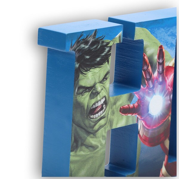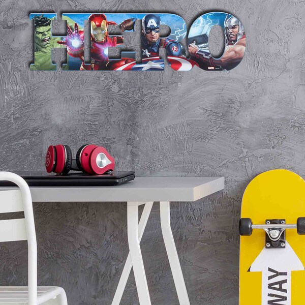 Make a superheroic statement in your space with this bright decor. Shaped like the word, “Hero,” this striking decor is a must-have for your favorite aspiring Avenger.