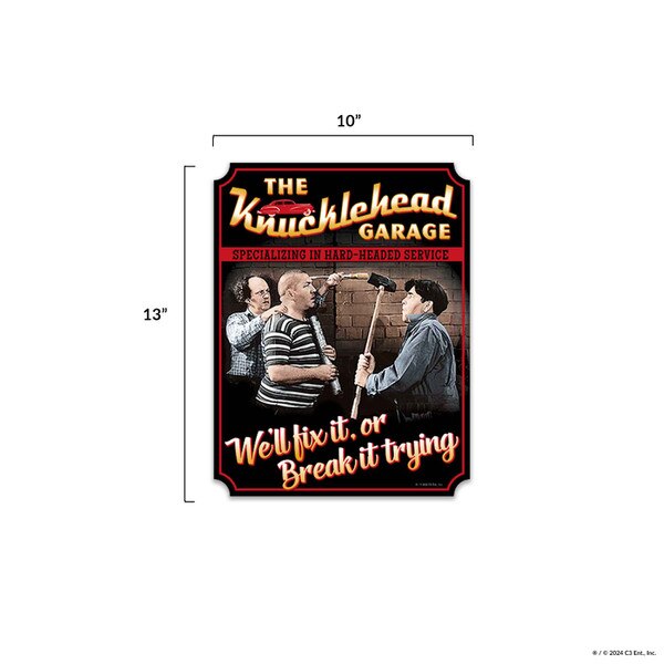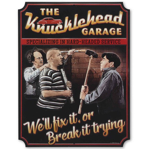 The Three Stooges Knucklehead Garage We'll Fix It Embossed Metal Sign