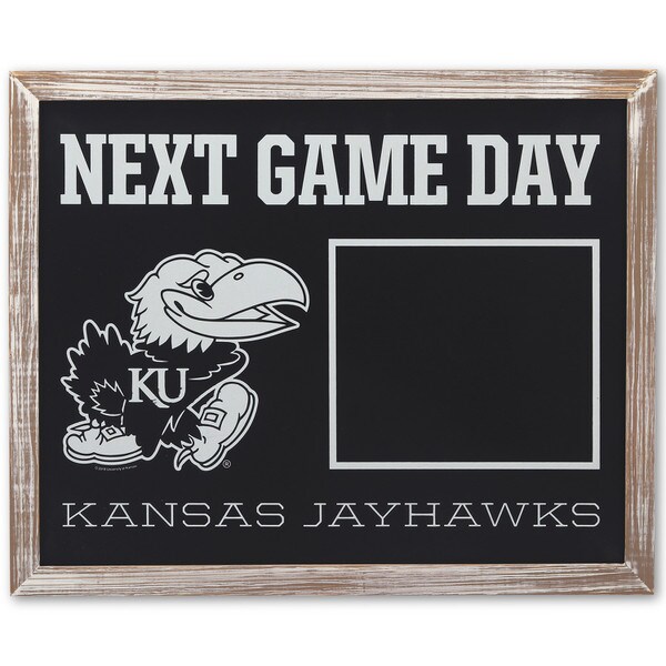 Never miss a game with this handy wood framed Kansas Jayhawks chalkboard. Be reminded, get excited, and stock up on all your favorite game day goodies. The countdown begins!