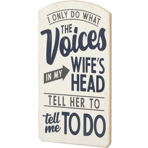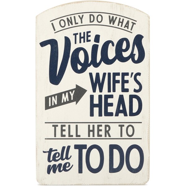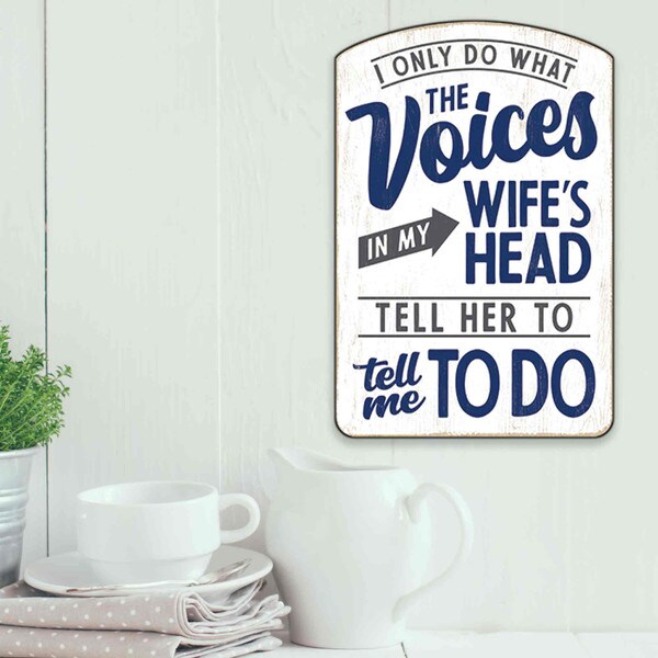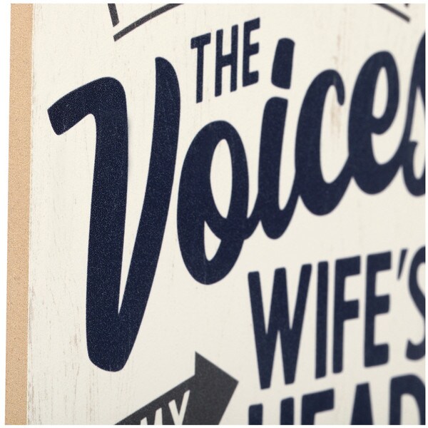 Proudly put your hilarious personality on display with this wall art. In shades of blue, gray, and white with eye-catching typography and a rustic finish, this sign is a unique way to poke fun at own relationship.